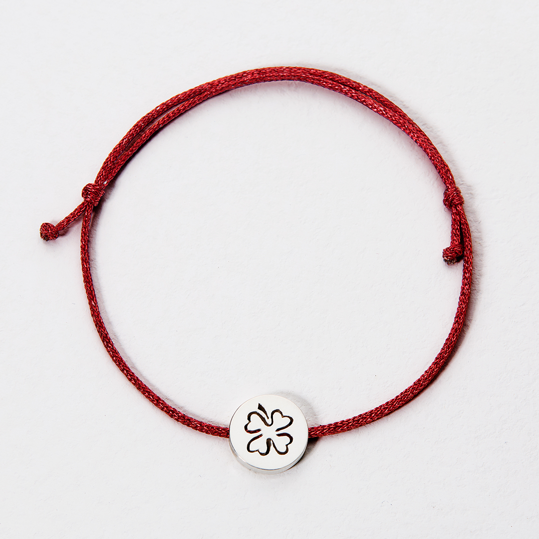 The four-leaf clover pairs beautifully with the vivid red string, adding a simple yet meaningful accent to the piece.